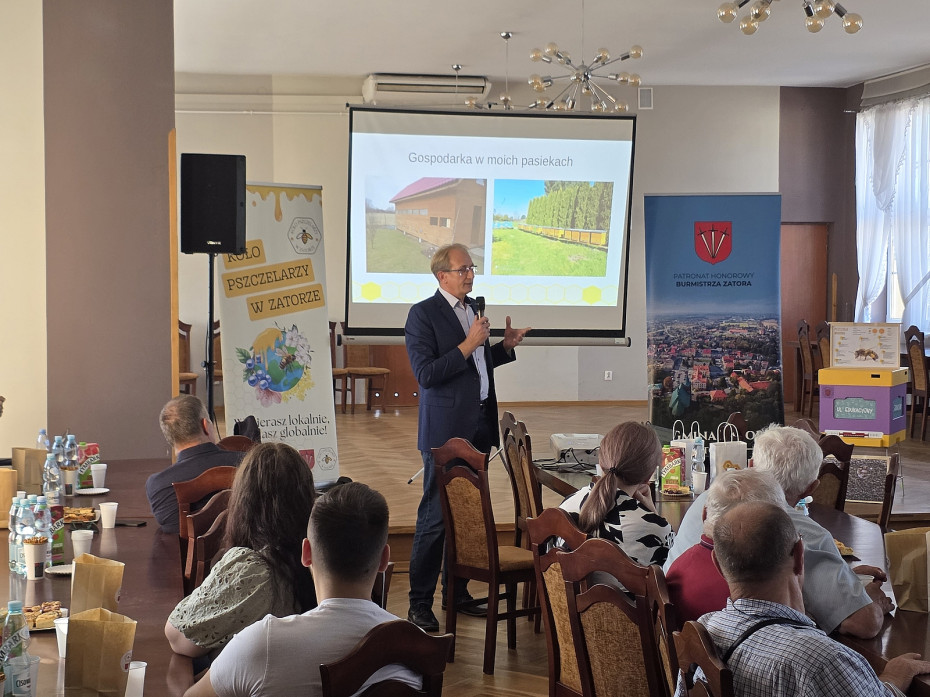 Dnia 20 września 2025 roku w Domu Ludowym w Podolszu, odbyła się II Konferencja Pszczelarska pod patronatem Burmistrza Zatora. Podczas wydarzenia zebrani goście mogli usłyszeć wykład poruszający problematykę gospodarowania matkami pszczelimi w pasiecie, wygłoszony przez Pana Andrzeja Kuliga, mistrza pszczelarstwa posiadającego zawodowe gospodarstwo pszczelarskie. W kolejnej części, prof. dr hab. Adam Tofilski z Katedry Zoologii i Dobrostanu Zwierząt, Wydziału Hodowli i Biologii Zwierząt, Uniwersytetu Rolniczego w Krakowie, w swoim wystąpieniu omówił temat biologii i historii pszczoły miodnej oraz odniósł się do zagadnienia wyzwań współczesnego pszczelarstwa.