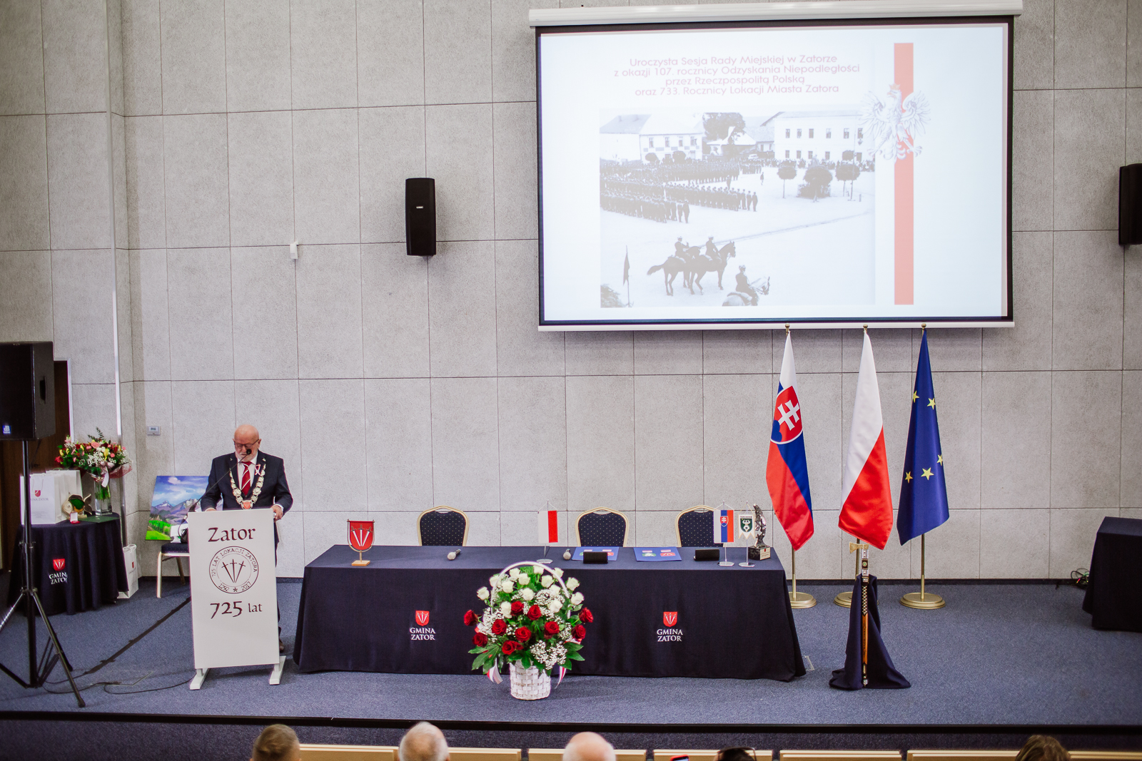 Podczas sesji podpisano także umowę o współpracy między Gminą Zator a słowacką Gminą Terchová, umacniając partnerstwo i międzynarodową przyjaźń obu samorządów. Uroczystość uświetnił wykład prof. Konrada Meusa z Uniwersytetu Komisji Edukacji Narodowej w Krakowie, poświęcony historii odzyskiwania przez Polskę niepodległości oraz znaczeniu lokalnych wspólnot w budowaniu narodowej tożsamości. Na zakończenie odbył się koncert patriotyczny w wykonaniu Roberta Budzynia, który wprowadził uczestników w nastrój zadumy i radości z bycia częścią wolnej Ojczyzny.