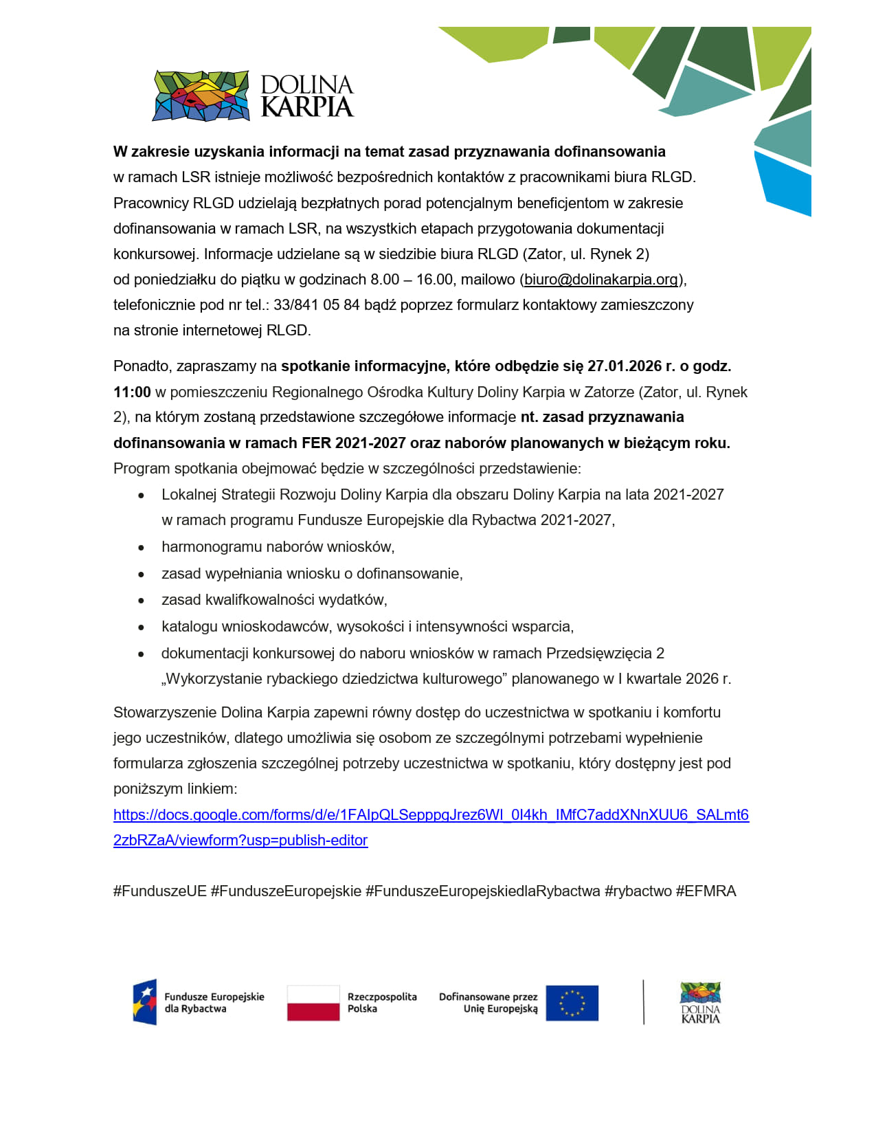 Wydarzenie informacyjno-promocyjne dotyczące realizacji LSR: Kampania informacyjna na temat naborów planowanych w bieżącym roku „LSR w 2026"