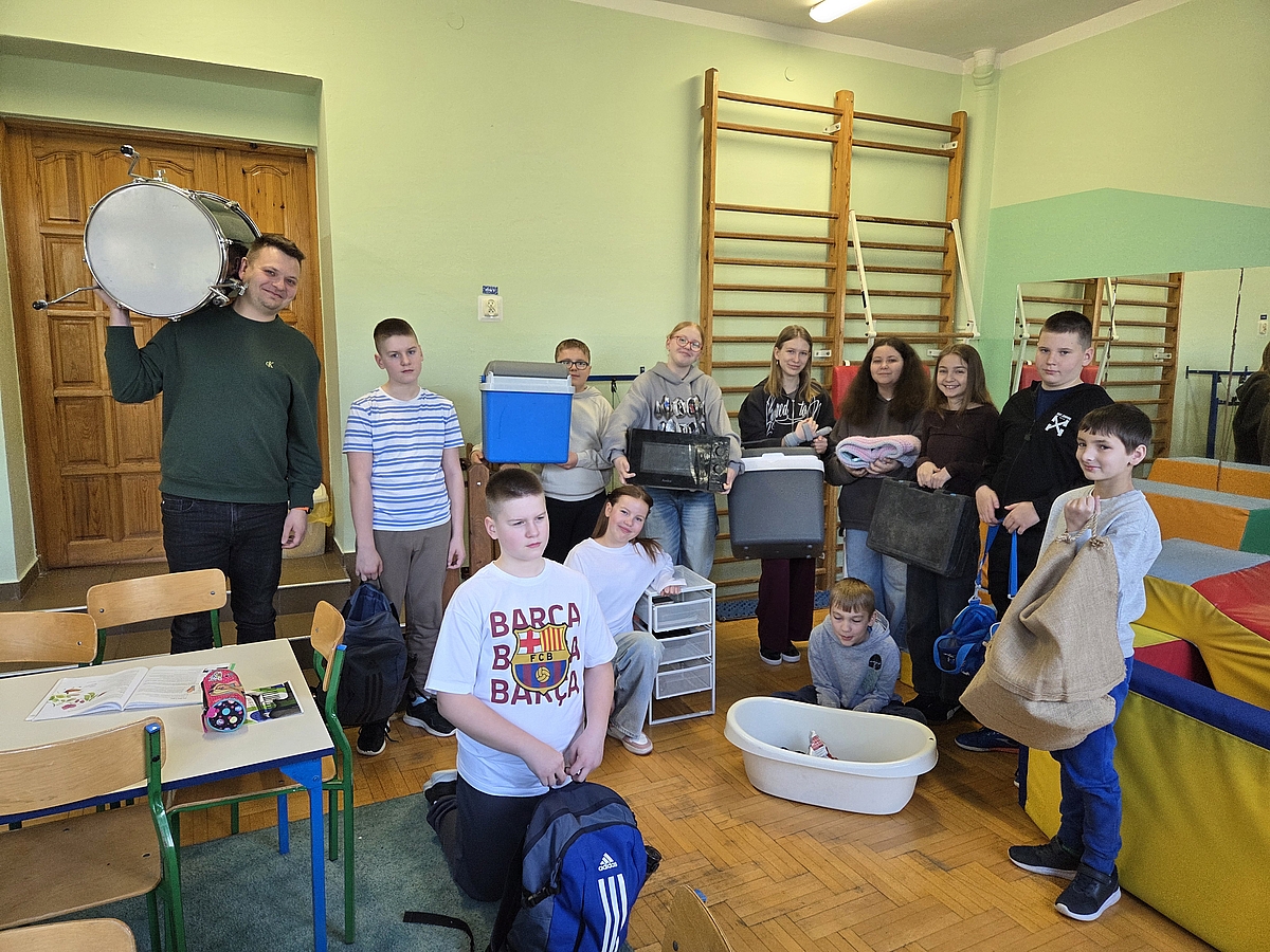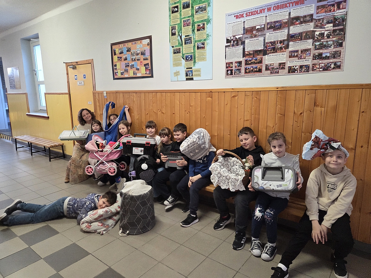 Przekraczając 1 kwietnia, progi naszej szkoły, mogło się zdawać, że znajdujemy się na lotnisku, a dzieci gotowe są już na wakacyjny lot. Większość spacerowała po korytarzu z walizkami, niecierpliwie oczekując przyjścia kolejnych osób. Tymczasem widząc pokrowiec od gitary, koszyki wiklinowe, mikrofalówkę , czajnik, bęben z pralki, czy też pudełko z pizzy, można było odnieść wrażenie, że jednak coś tu się nie zgrywa. Dzisiejsza akcja Samorządu Uczniowskiego cieszyła się ogromną popularnością. "Dzień bez plecaka" z okazji pierwszokwietniowych żartów powoli staje się tradycją naszej szkoły. Podręczniki i zeszyty przywędrowały dzisiaj w niesłychanie pomysłowych przedmiotach.