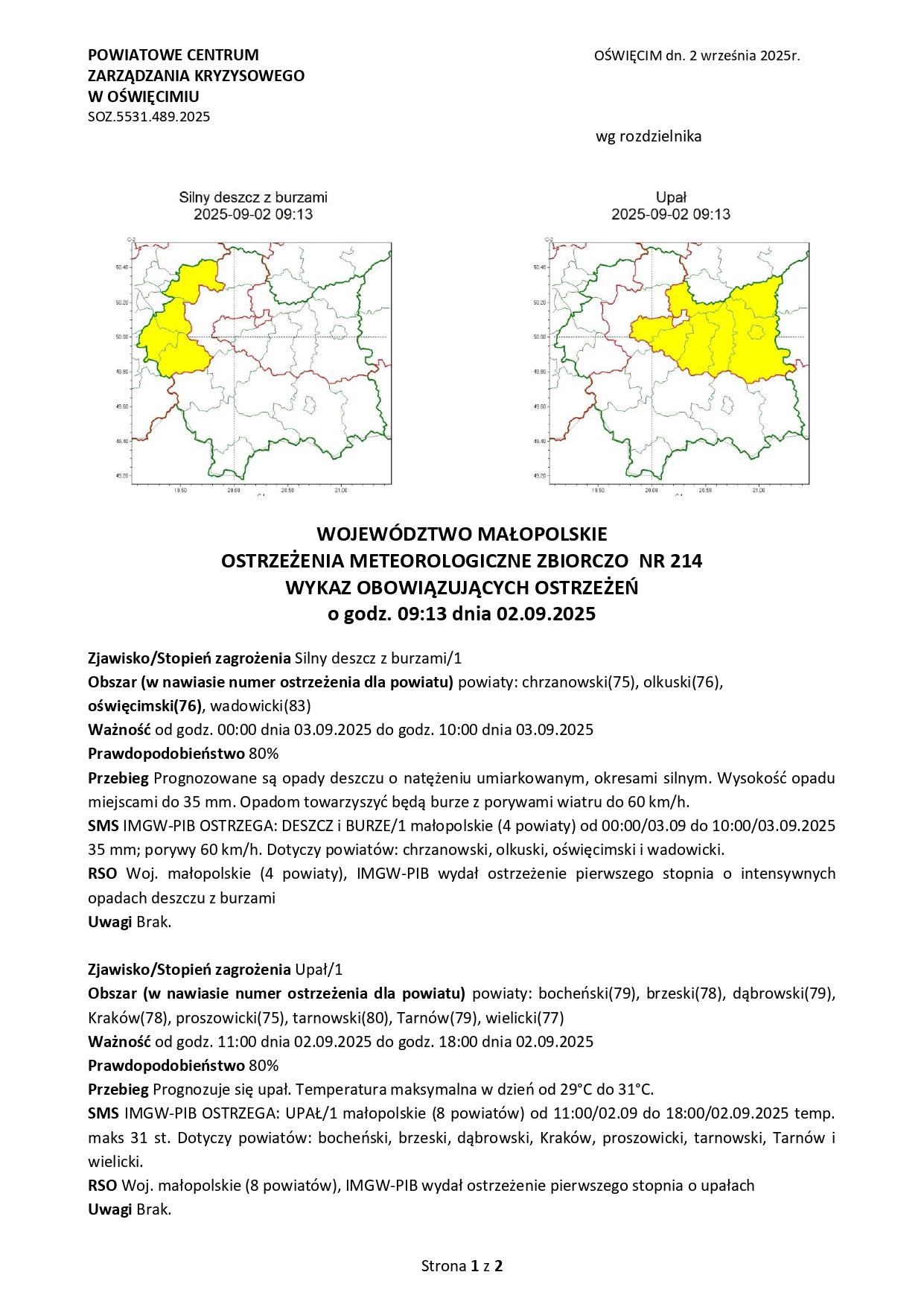 Ostrzeżenie meteorologiczne - silny deszcz z burzami/1