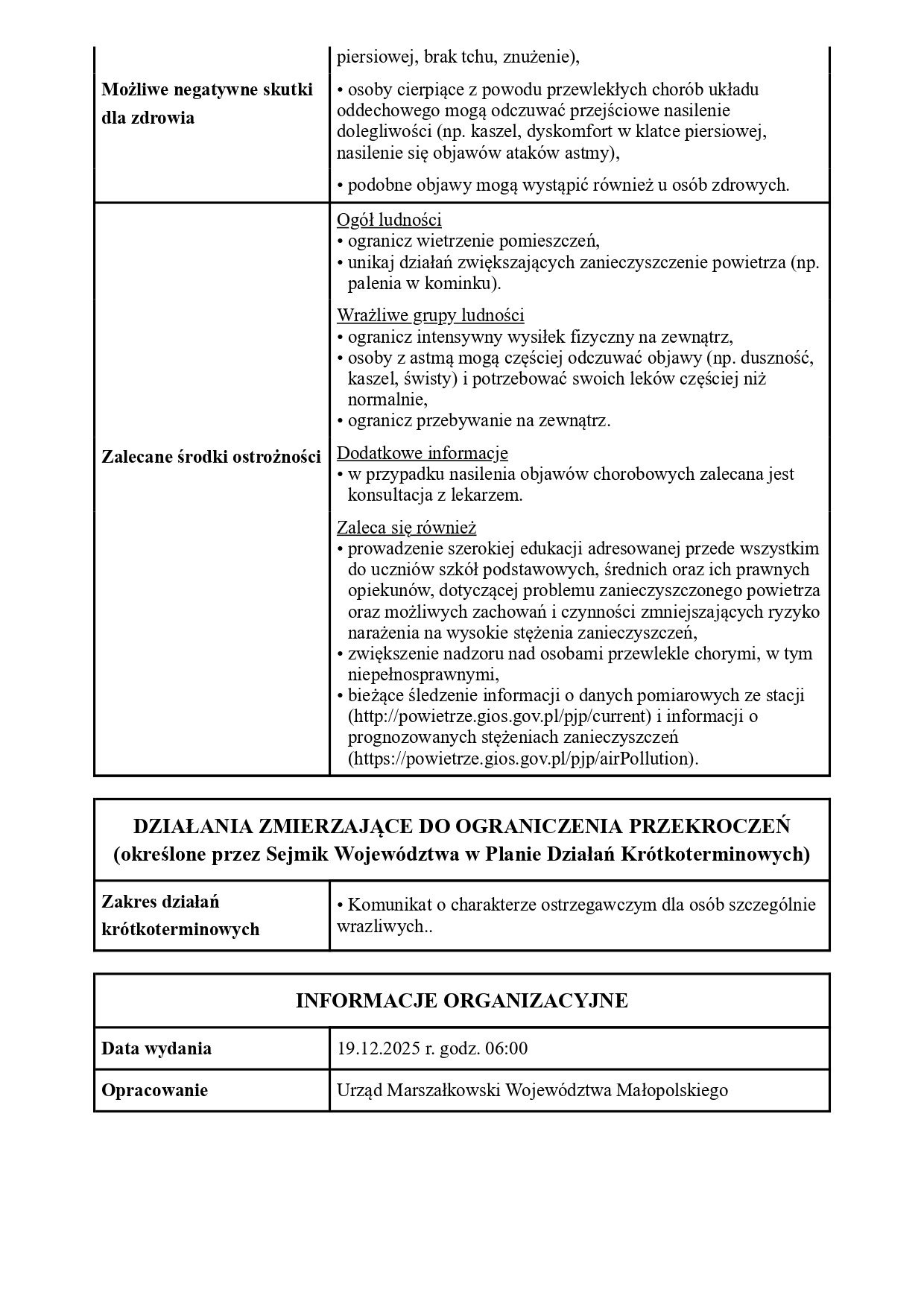 Poziom 0 Powiadomienie o ryzyku wystąpienia przekroczenia średniodobowego poziomu dopuszczalnego dla pyłu zawieszonego PM10 w powietrzu