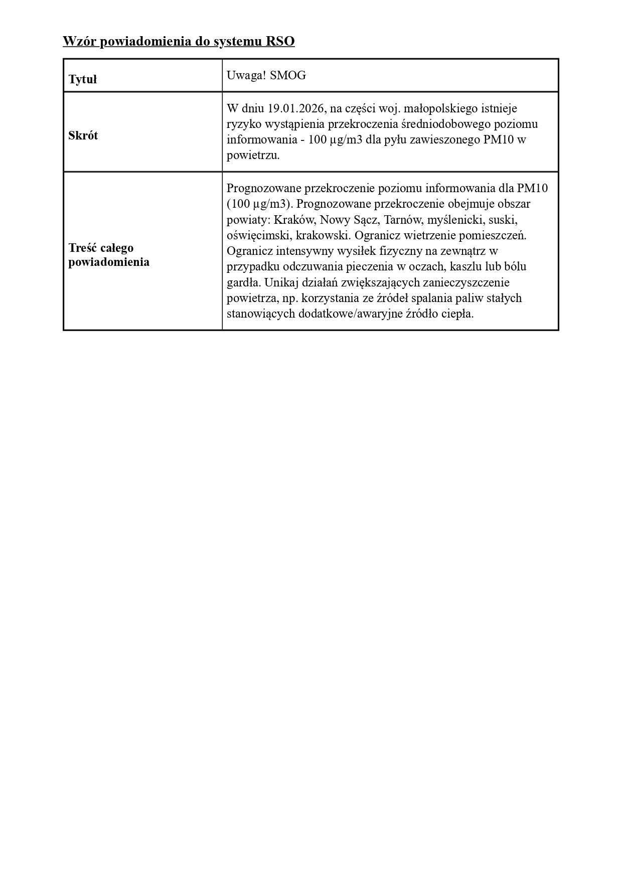 Poziom 2 Powiadomienie o ryzyku wystąpienia przekroczenia średniodobowego poziomu informowania dla pyłu zawieszonego PM10 w powietrzu