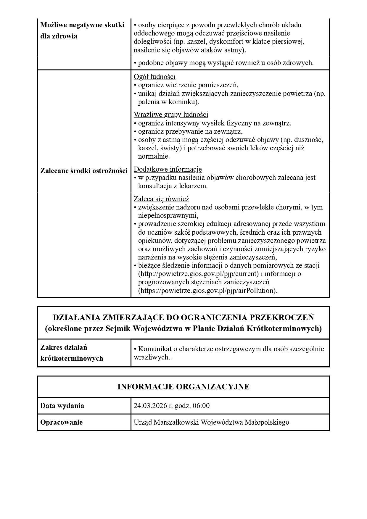 Poziom 0 Powiadomienie o ryzyku wystąpienia przekroczenia średniodobowego poziomu dopuszczalnego dla pyłu zawieszonego PM10 w powietrzu