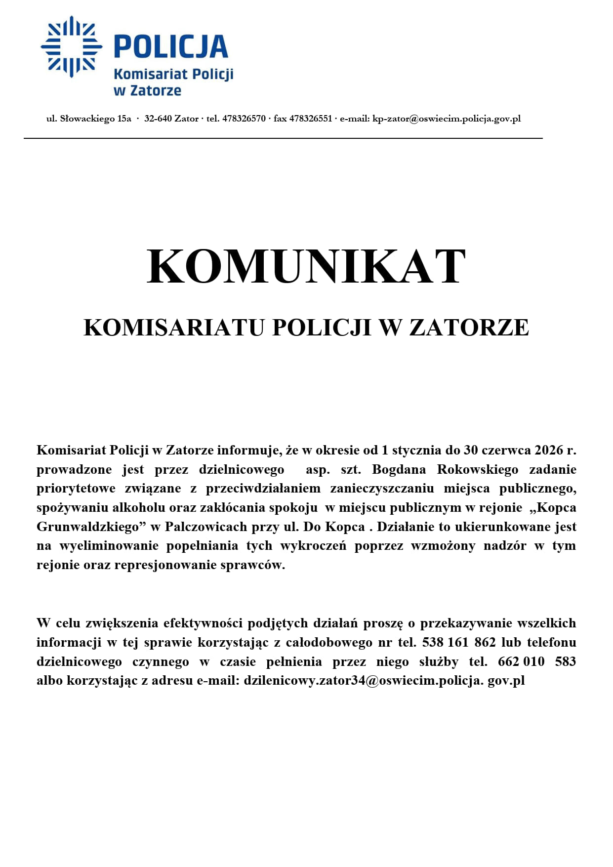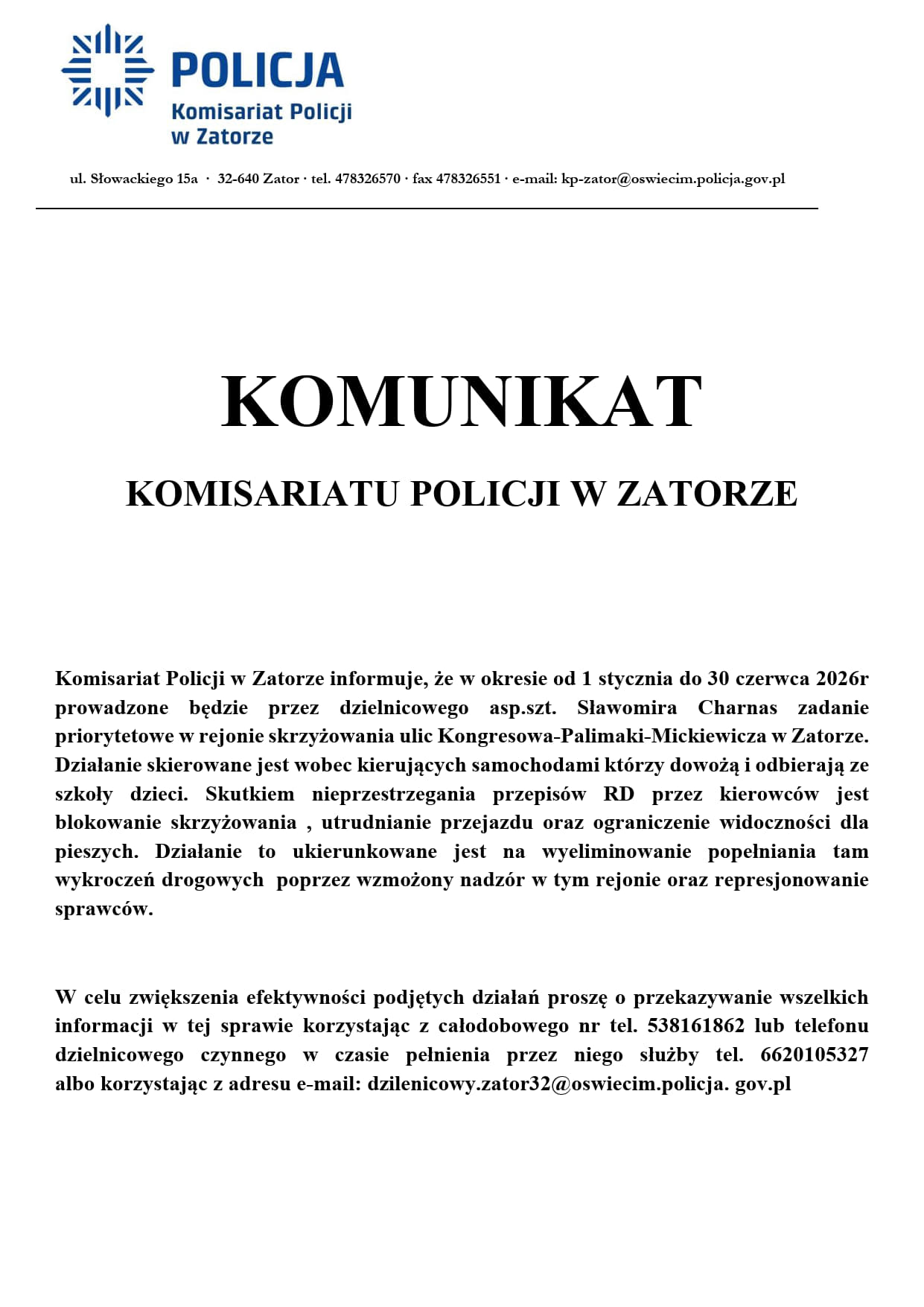 Komisariat Policji w Zatorze od 03.07.2020r., jak wszystkie jednostki Policji w kraju zmienił nr telefonu miejskiego.